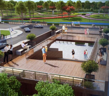 Dự án được phân chia thành Khu Phố Đông và Khu Phố Tây, đối xứng qua công viên Trung Tâm: